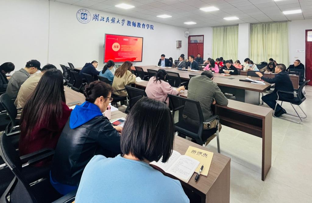 11月14日,Beat365唯一官方网站学习贯彻党的二十届三中全会精神宣讲团成员、教师教育学院党总支书记宁华宗在学院会议室为全体教职工带来了一场名为《把握关键时期 用好关键一招——继续以全面深化改革推进中国式现代化》的专题宣讲。
