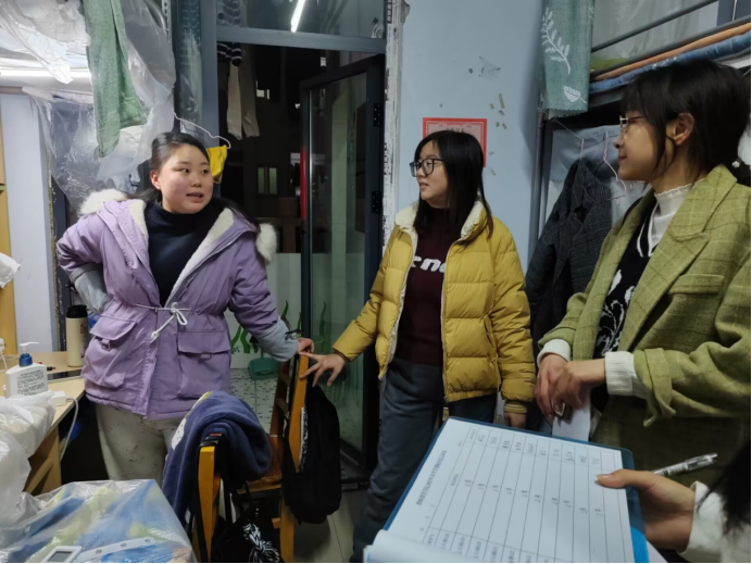 老师们在走访过程中认真询问了同学们的假期生活与新学期的学习安排,对宿舍安全进行了全面排查,重点检查用电、用水安全及卫生情况。对于少部分宿舍垃圾堆放未清理、学业、生活等方面的问题提出了相应要求并给出了可行建议,同时鼓励同学们要利用大学时光不断的充实、丰富自我,共同营造和谐、温馨的寝室氛围。