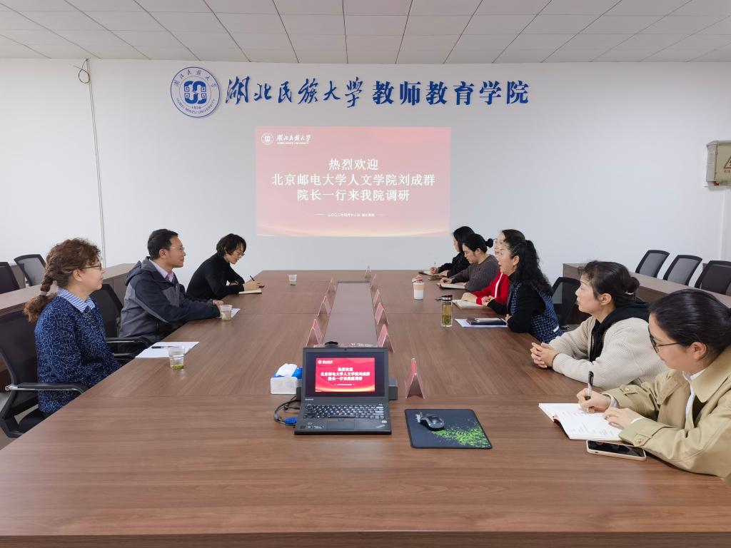 4月14日上午,北京邮电大学人文学院教授、副院长、预科教育中心主任刘成群、副主任托娅、教务员吴岚一行来我院考察交流。学院党总支书记刘际华、副书记郑艺、预科教学部教师代表及相关科室负责人参加座谈。