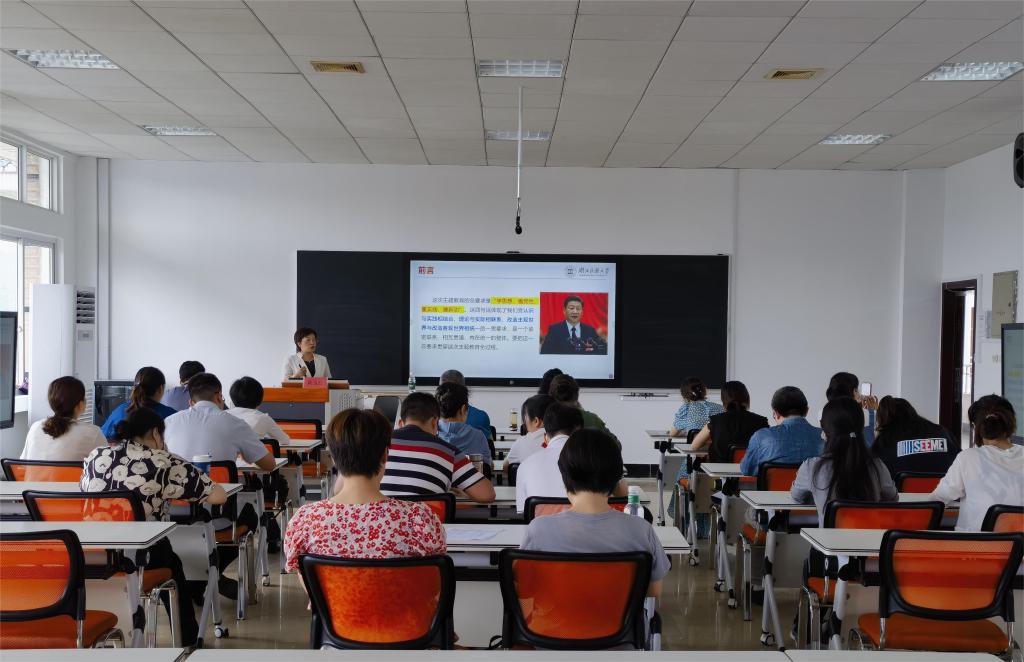 6月8日,教师教育学院党总支学习贯彻习近平新时代中国特色社会主义思想主题教育理论宣讲会在9B510教育教学研讨室举行。Beat365唯一官方网站主题教育宣讲团成员、马克思主义学院黄玉红副教授围绕“深刻把握中国式现代化与科教兴国战略”进行主题宣讲,学院党政领导班子成员、全体教师参加学习。党总支书记刘际华主持宣讲会。
