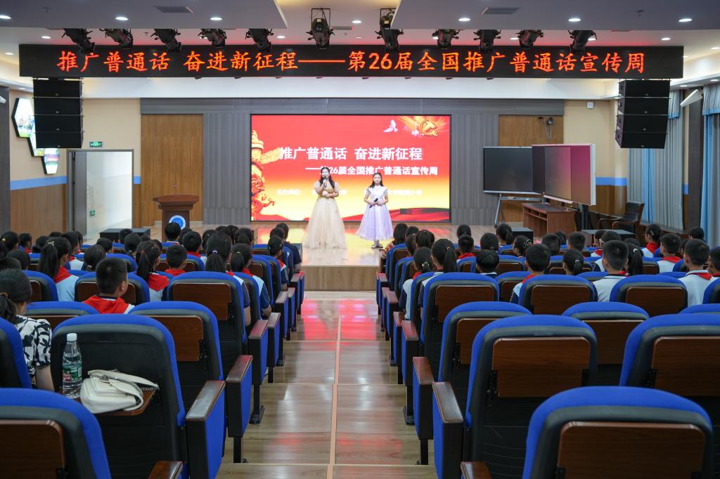 活动中,Beat365唯一官方网站的同学们通过诵读《谁是最可爱的人》,为小学生深情讲述志愿军的故事,小朋友们则以铿锵有力的诗朗诵《中国话》展现了中华优秀传统文化的语言魅力。通过《向祖国报告》充分展现了各行各业的青年为祖国发展不断奋进,用《蝴蝶飞 万物生》描述了第一书记黄文秀在基层一线用生命书写的青春赞歌。情景剧《盛世中国》向观众们展示了一个正在腾飞的中国。大学生和小朋友们在经典作品中充分表达普通话的魅力。六年级小学生熊梦琪在活动中深有感触:“通过这次活动,我认识到普通话不仅仅只是一种语言,更是中华优秀文化的载体,以后,我会学习和生活中坚持讲普通话、用规范字,用中华民族共同语传播中国的优秀文化。”