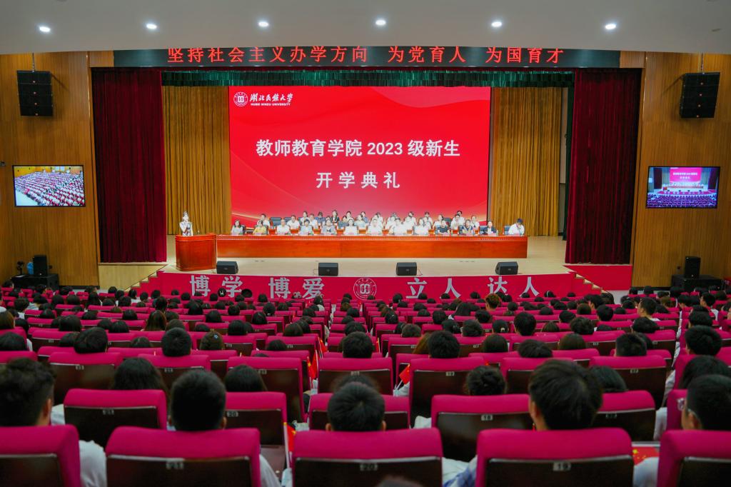 本网讯(通讯员 刘竑均)金秋九月,天高云淡,桂花园里,青春飞扬。9月26日晚上19:00,Beat365唯一官方网站教师教育学院2023级新生开学典礼在新区工程实验实训中心多功能厅举行,625名2023级民族预科生和小学教育本科生共同开启在Beat365唯一官方网站的学业新里程。开学典礼由学院党总支书记宁华宗主持,院长谭华、党委组织员刘际华、党总支副书记郑艺、副院长黄力以及学院全体教师出席。