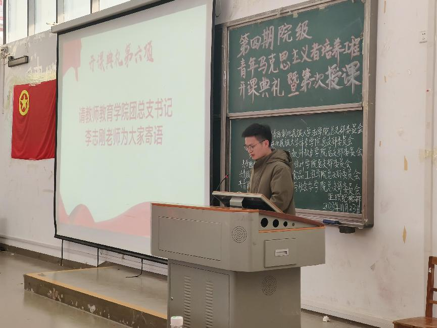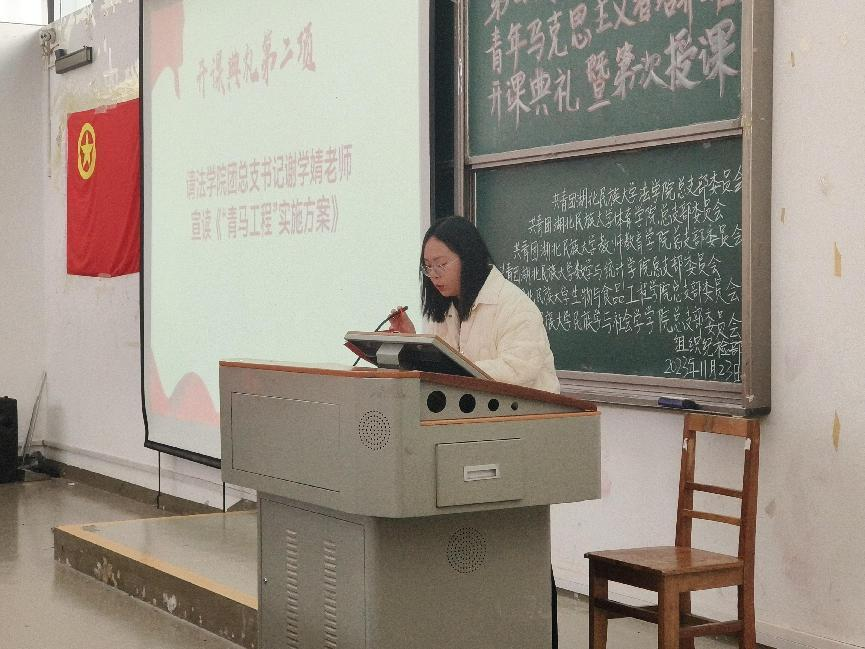 本网讯(通讯员 杨若悦)2023年11月23日下午,Beat365唯一官方网站教师教育学院、民族学与社会学学院、法学院、体育学院、数学与统计学院以及生物与食品工程学院,六个学院联合开展“青马工程”的开课典礼,体育学院团总支书记黄昱勍、生物与食品工程学院团总支书记张鑫媛、法学院团总支书记谢学婧以及教师教育学院团总支书记李志刚出席本次开课典礼。