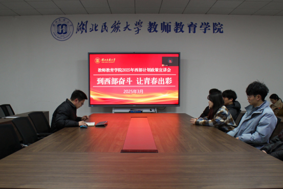 本网讯(通讯员 饶印思 胡聪颖)“到西部去,到基层去,到祖国和人民最需要的地方去”,教师教育学院于2025313日在学院会议室举办了以“到西部奋斗 让青春出彩”为主题的西部计划政策宣讲会。宣讲会由教师教育学院团委书记李志刚主持,小学教育2025届在校的毕业生到场聆听。