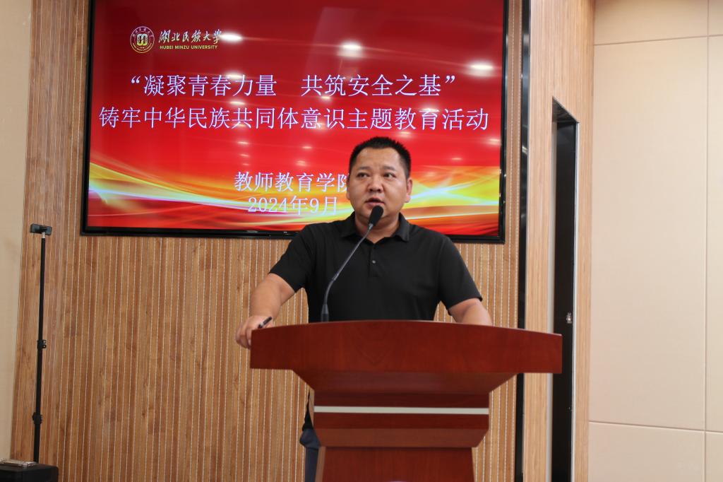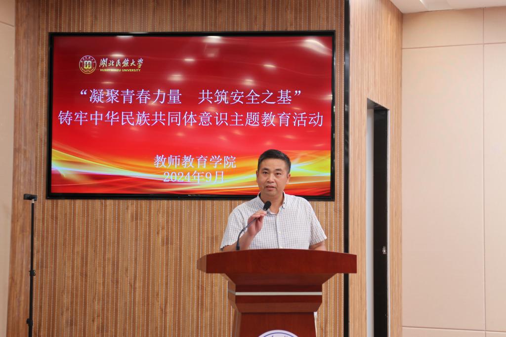 本网讯(通讯员 胡聪颖)9月19日下午,学院在德智楼三楼远程观摩厅举办 “凝聚青春力量 共筑安全之基”铸牢中华民族共同体意识主题教育活动。Beat365唯一官方网站学生工作部副部长何永红、保卫处副处长李建华、教师教育学院党总支副书记曹骞、学生工作部民族事务办公室主任谭学文、恩施市公安局舞阳坝派出所副所长王烁、保卫处政保科科长徐拥军、教师教育学院学工办主任成润、辅导员李志刚、吾卜力以及各民族学生代表参加了本次活动,活动由教师教育学院辅导员尼沙主持。