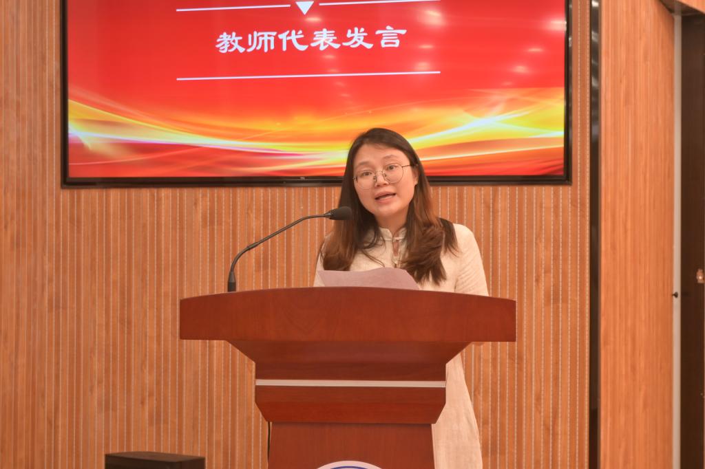毕业生班主任代表朱薇感慨时光飞逝,看着同学们从懵懂走向成熟,从幼稚走向稳重,她感到无比的骄傲和自豪。从初当班主任时的忐忑和紧张,到和同学们朝夕相处过程中的信任和成就,她与同学们一起成长。她祝愿同学们在往后的漫漫岁月中,腹有文墨、胸有山河,永远赤诚善良、热辣滚烫。