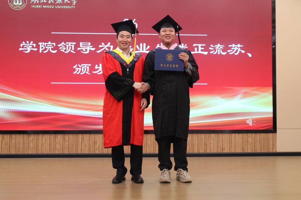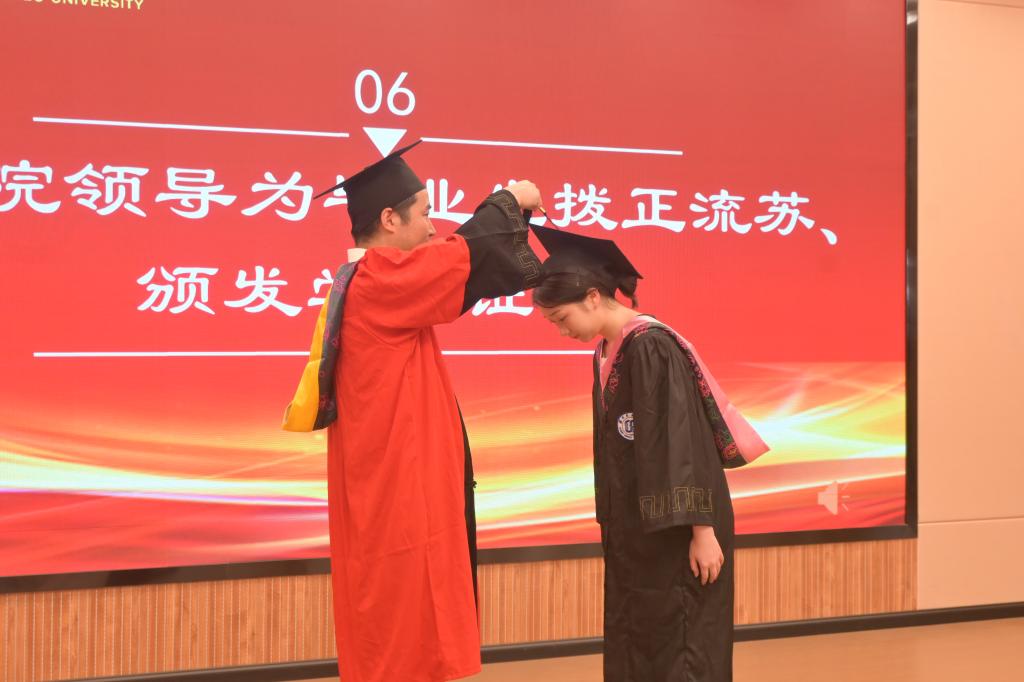 宁华宗为毕业生拨正流苏、颁发学位证书,同学们一个个走上舞台,接受着老师们的祝福和期望。这一刻,毕业生脸上洋溢着满满的喜悦、自豪,他们感受到了来自母校的深深祝福和殷切期望。