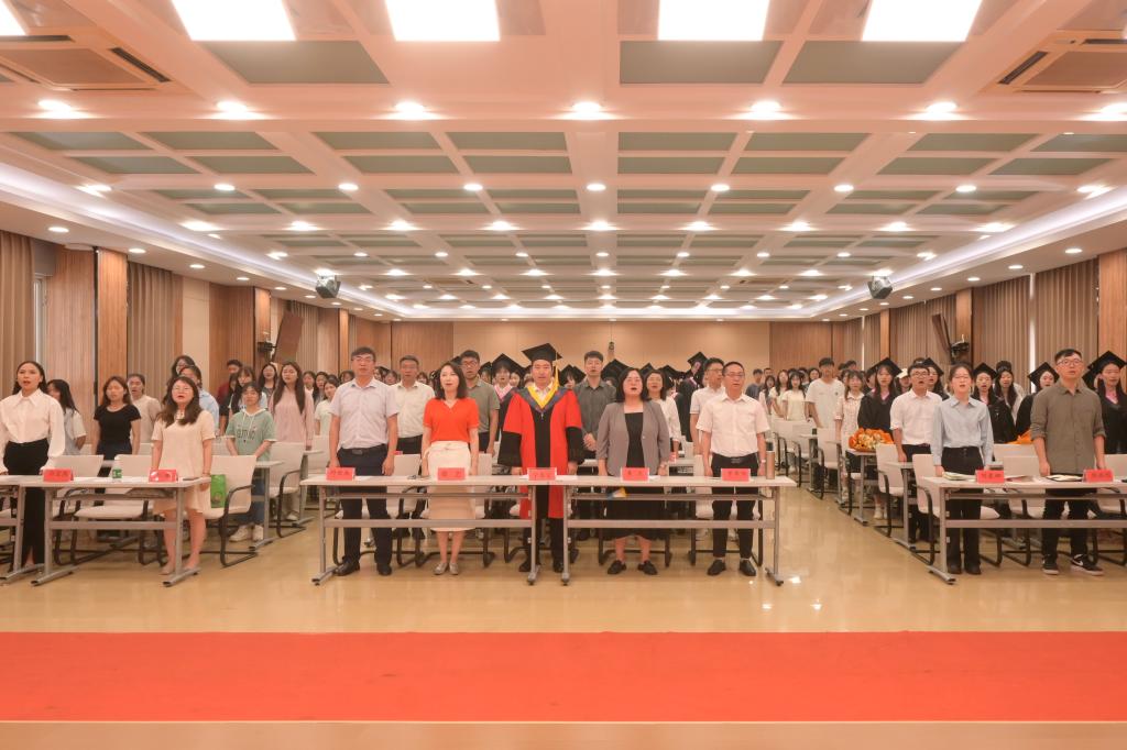 典礼在雄壮激昂的国歌声中拉开序幕,全体师生庄严肃立、齐唱国歌。