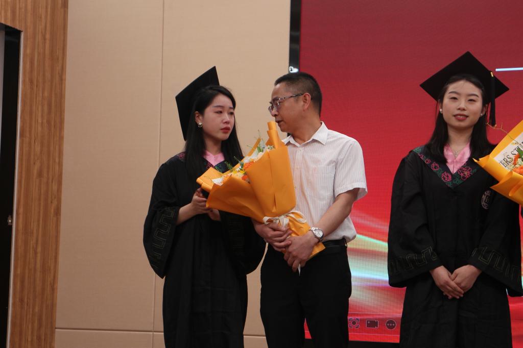 最后,毕业生们为班主任、专业教师、辅导员代表送上鲜花,表达感恩之情。这不仅是对他们辛勤付出的感激,更是对他们无私奉献的敬意。