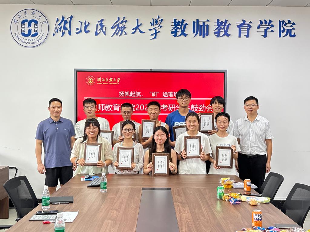 本网讯(通讯员 陈国旭)7月15日下午,教师教育学院在9A505会议室召开2025年考研学生鼓劲会。学院党总支书记宁华宗、党总支副书记曹骞、辅导员李志刚、陈国旭出席会议,为全力备考研究生的学子们加油鼓劲。