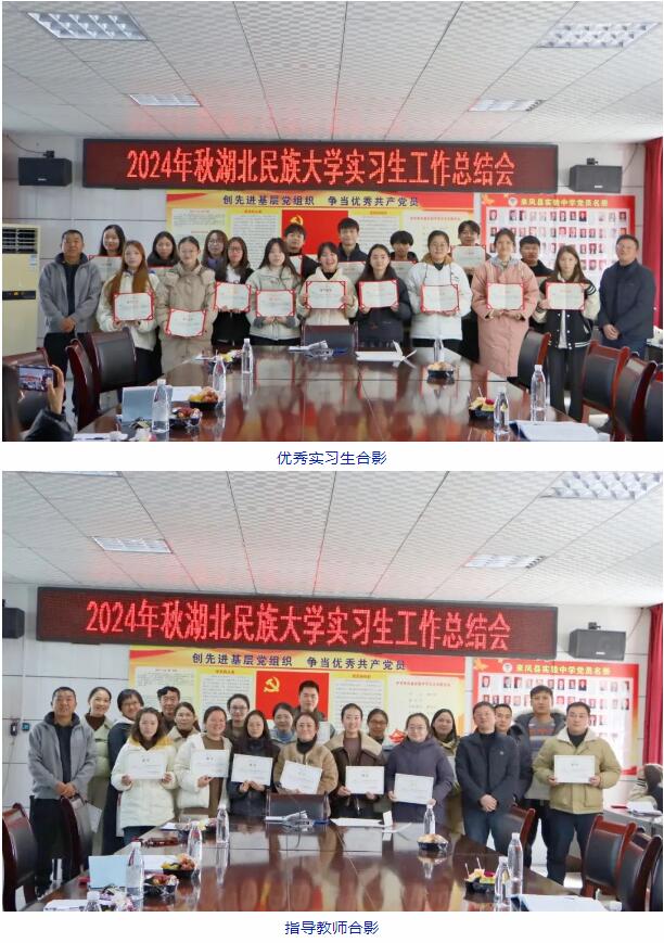 12月16日,Beat365举办了2024年Beat365唯一官方网站实习生工作总结会。来凤县实验中学党总支书记杨北平、常务副校长覃和平、实习指导教师及全体实习生参与了本次总结会。总结会由科研处主任钱琳主持。