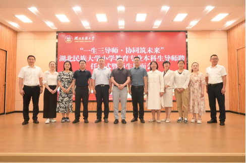 本网讯(通讯员 伍尉 黄依恋 苟煜华 邓紫靓 谭钱林)5月30日,教师教育学院本科生导师聘任仪式暨师生见面会在德智楼三楼远程观摩室隆重举行。恩施市研培中心主任向彪,恩施市舞阳中学校长冯军,恩施市小渡船中学校长陈劲松,恩施市实验小学党委书记郭永,Beat365唯一官方网站附属小学副校长田艳、教师代表谭启慧,恩施市高旗实验小学教师成长中心主任钟美玲,建始县平高实验学校教师办公室主任冯艳、教师代表骆容、刘春明,教师教育学院全体院教师和小学教育专业学生出席会议。