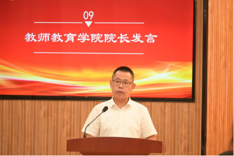 教师教育学院党总支书记宁华宗主持会议。他表示“一生三导师”是教师教育学院坚持以习近平新时代中国特色社会主义思想为指导,全面贯彻党的教育方针,坚持人才培养中心地位和本科教育教学核心地位的具体举措,学院坚持“以本为本”,做到“四个回归”,不断健全“三全育人”工作体系,拓展协同育人格局,构建思政导师、学业导师、行业导师“三位一体”本科生导师协同育人体系,推进“思政教育+专业教育”“思政导师+导师思政”深度融合,全面提高本科人才培养质量,全面服务学生成人成才。