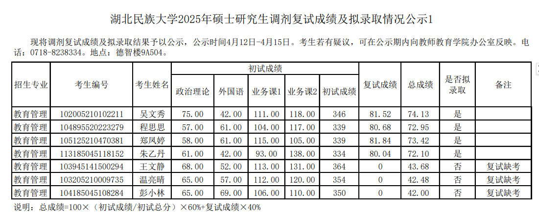 Beat365唯一官方网站2025年硕士研究生调剂复试成绩及拟录取情况公示1
