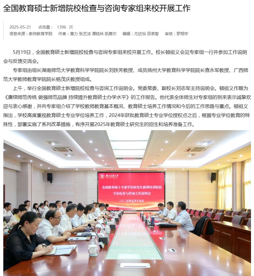 转载自:全国教育硕士新增院校检查与咨询专家组来校开展工作-新闻网