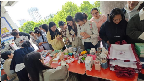 为增加用户粘性,图书馆特别设置了小礼物赠送环节。除了有需求的考研学子可以领取考研全套书籍外,其他读者还可以通过关注图书馆公众号领取定制书签、童年玩具、笔记本、水杯等文创礼品。现场一波又一波师生积极挑选,互相交流。“哎,还有溜溜球,好久没玩了!”一名学生惊讶道。全程不到30分钟,不管是书籍还是众多小礼品几乎被领取完。还有陆续过来的学生面对所剩无几的礼品桌意犹未尽,只能表示下次活动早来参与。