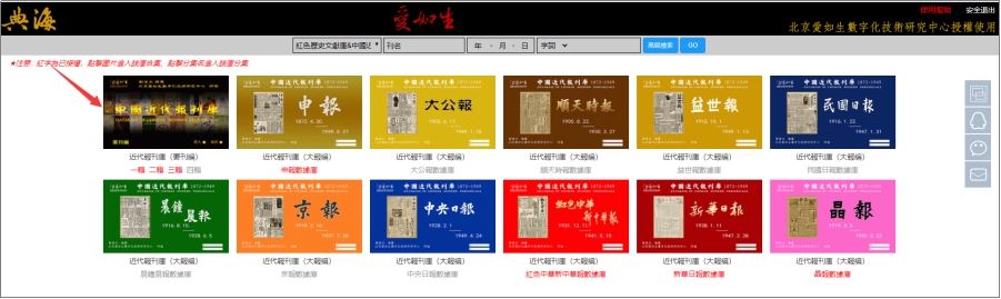 爱如生中国近代要刊库是精选晚清和民国期间重要报刊类出版物的全文检索版大型历史文献数据库,分为大报编(收录大型报纸)和要刊编(收录重要期刊),由北京大学教授刘俊文总纂,北京爱如生数字化技术研究中心开发制作。