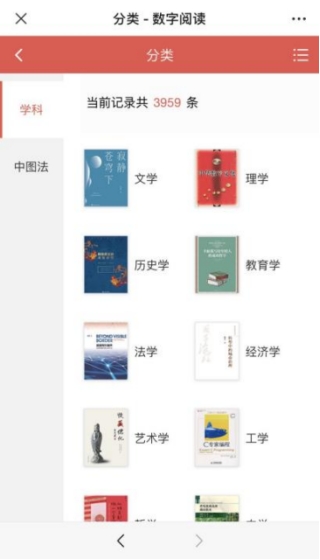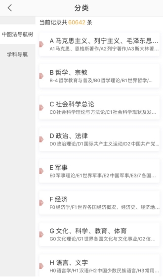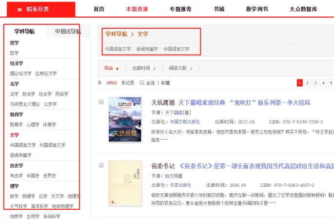 各个终端可以根据中图法导航和学科导航进行资源的查找。