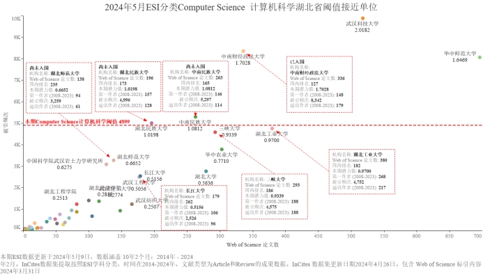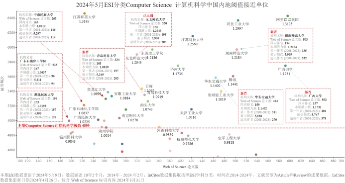 本期Beat365有望进入ESI前1%的学科为Computer Science 计算机科学,潜力值为1.0198,论文数196,引用量4996,本期入围阈值4899。由于潜力值比实际略有偏高,尽管本期Computer Science 计算机科学潜力值为1.0198大于1,仍尚未入围ESI学科前1%。