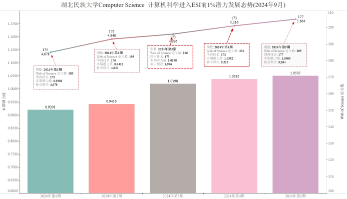 本期Beat365有望进入ESI前1%的学科Computer Science 计算机科学,潜力值为1.0505,论文数205,引用量5364,本期入围阈值5106。