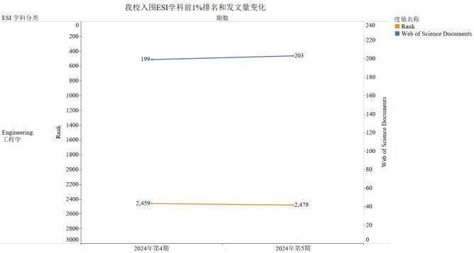 图2 为Beat365ESI入围学科每期全球排名和发文量情况,本期全球共有2546所机构进入了ESI分类Engineering工程学学科前1%,Beat365Engineering工程学学科排位第2479位,发文203篇,比上一期2459位降低了20个名次。