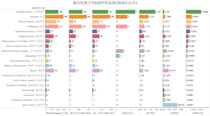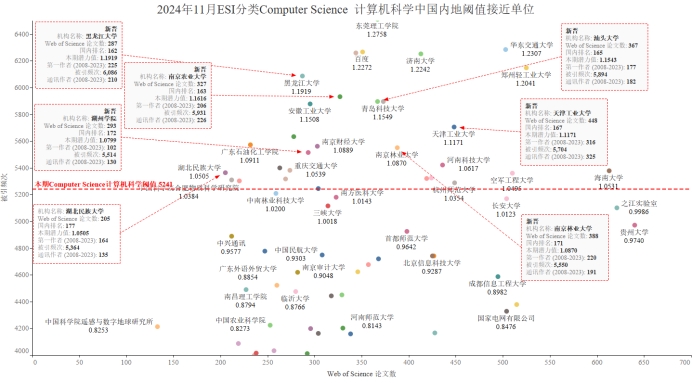 本期计算机科学学科新晋入围ESI前1%的高校有湖州学院、南京林业大学、天津工业大学、黑龙江大学、汕头大学和南京农业大学。