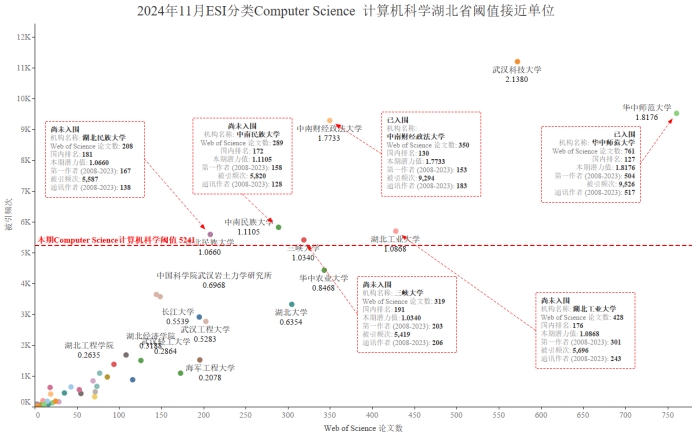 表4 Computer Science 计算机科学湖北省阈值接近单位情况