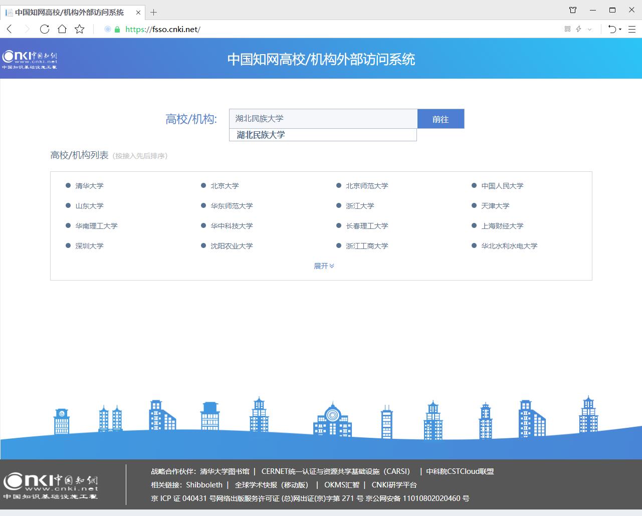 1、使用非校园 IP 地址打开浏览器,输入 https://fsso.cnki.net/