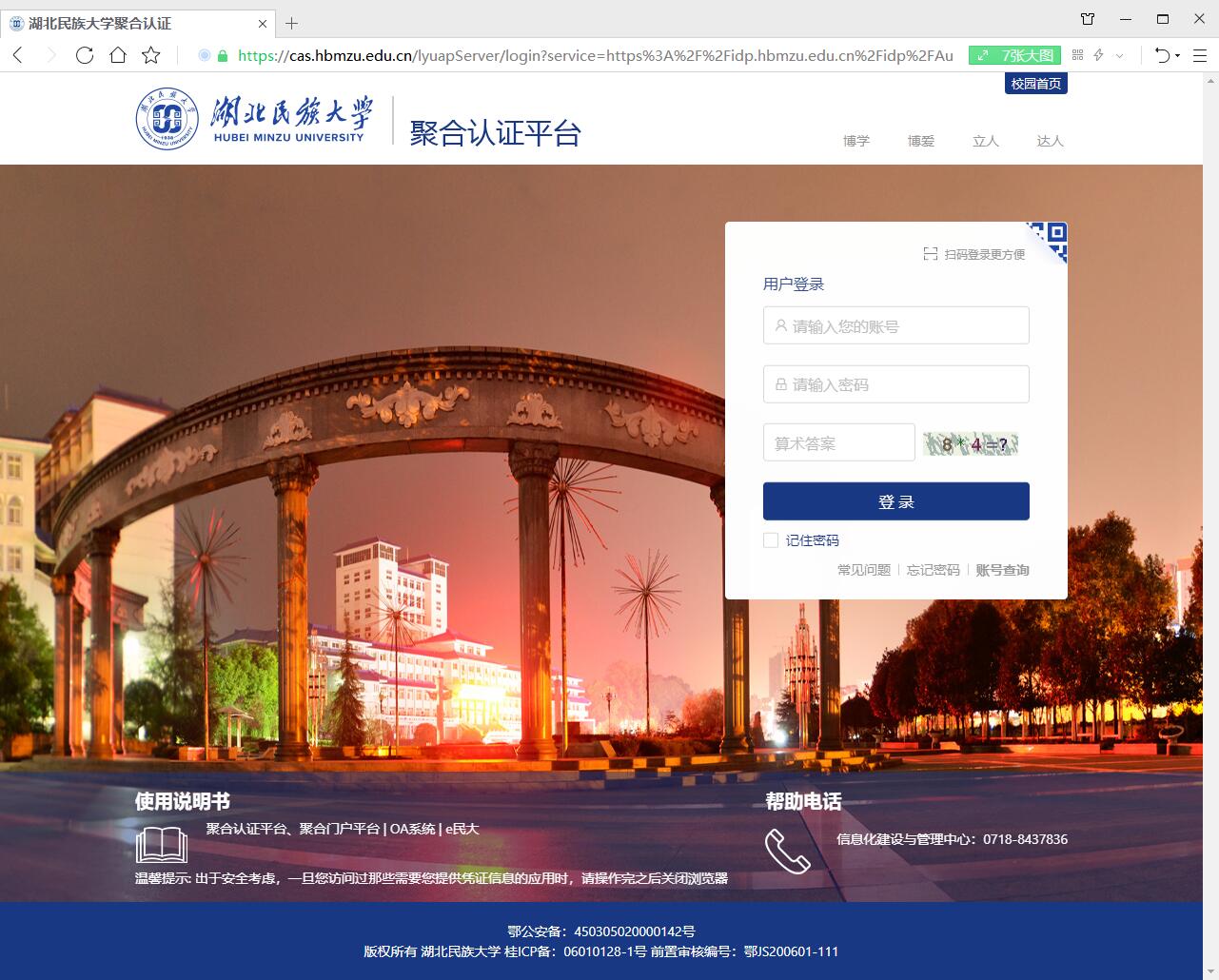 2、选择所在学校,Beat365唯一官方网站,进入Beat365唯一官方网站聚合认证平台登陆页面,输入统一身份认证帐号、密码及验证码