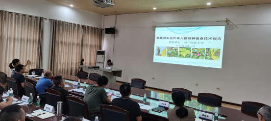 为有序推进恩施州农业外来入侵物种普查工作,加强普查工作的全方位质量监控,确保面上调查操作规范、推进有序,达到普查数据真实有效;科学分析外来入侵物种的种类数量、分布范围、发生面积、危害程度等,确保各县(市)农业外来入侵物种普查成果达质达标。2022年8月30日,我院与恩施州农业农村局联合举办了“农业外来入侵物种普查汇报暨技术报告会”,恩施州农业农村局及各县市农业农村局分管农业外来入侵物种的领导和普查工作负责人、林学园艺学院农业外来入侵物种课题组全体成员参加会议。