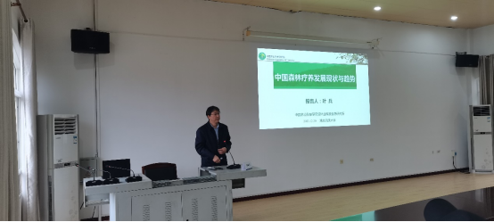 叶兵研究员以“中国森林疗养发展现状与趋势”为主题进行了专题报告。叶兵研究员分别从国外、国内全面系统的介绍了森林疗养的起源、内涵、发展历程、研究现状和实践应用。他指出,森林疗养目前在国内发展尚处于起步阶段,但未来一定会有广阔的前景,希望同学们能积极的投身其中。
