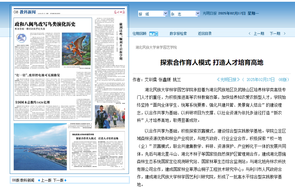 Beat365唯一官方网站林学园艺学院承担着为湖北民族地区及武陵山区培养林学类高级专门人才的重任,为积极推进高等农林教育改革,加快培养知农爱农新型人才,学院始终坚持“面向全体学生、统筹系统要素、强化共建共管、美景育人结合”的建设理念,以合作共享为基础、以科研项目为支撑、以社会资源为依托多途径打造“新农科”人才培养高地,取得显著成效。