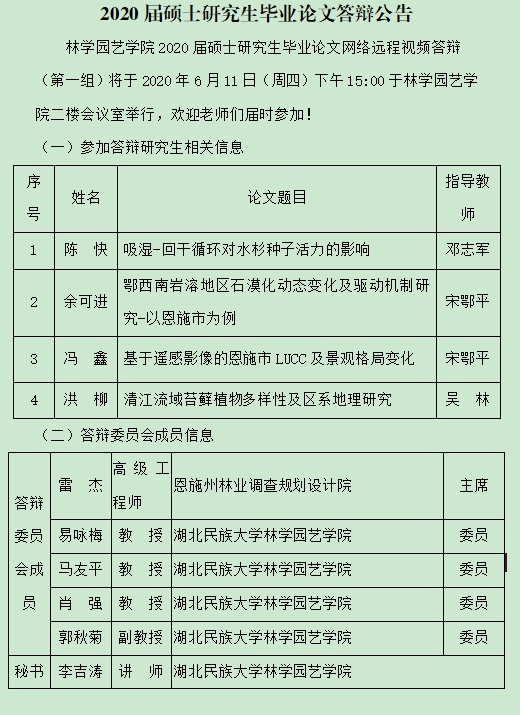 2020届硕士研究生毕业论文答辩公告