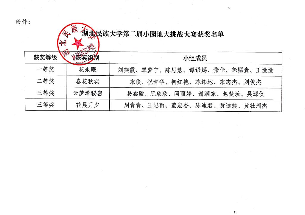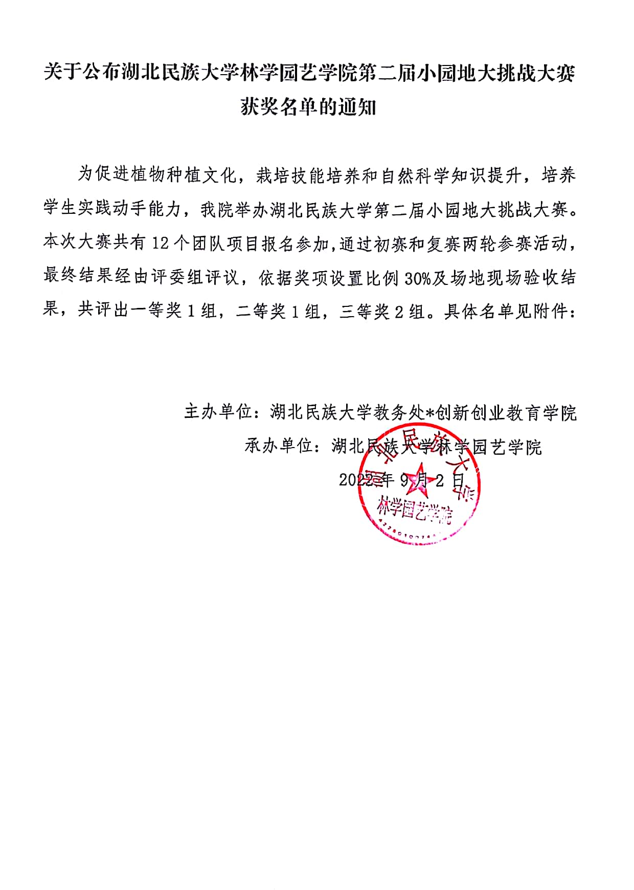 关于公布Beat365唯一官方网站林学园艺学院第二届小园地大挑战大赛获奖名单的通知