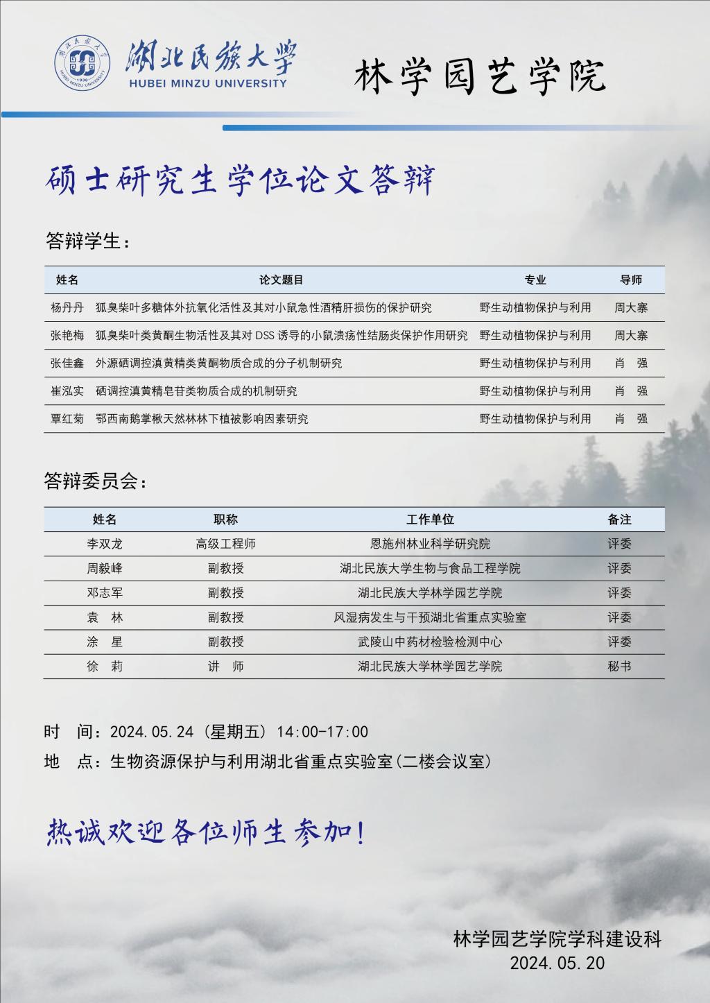 林学园艺学院2024届硕士研究生学位论文答辩公告(三)