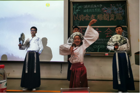 本网讯(见习通讯员 王思雨 孙浩天 安佳/文 见习通讯员 谭鑫鑫 郑爽 周欣岳/图)11月30日晚,我院在修远楼5B404教室顺利举行以“以诗会友,雅韵流觞”为主题的赛诗会决赛。我院党总支副书记赖申昊、团总支书记刘桃元、林学园艺专业班主任张强老师、团总支第一副书记杜锐、学生会主席徐颢文、心健委主席刘瑞曦、林通社社长刘鑫淼受邀出席并担任评委。我院大一班级和各大组织参加决赛,近百位学生到场观赛。
