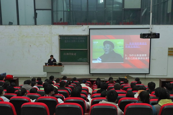 首先张祖鑫讲述张富清的生平经历。1948年,张富清主动请缨加入解放军西北野战军,期间获得多项荣誉;退伍后前往鄂西山区,扎根基层,为百姓服务。随后,他提出问题;“深藏功与名的张富清为什么选择在95岁高龄时讲出自己的故事?”引发听众深思。参课学生积极回答,表示老英雄张富清的事迹存在教育意义,他转变拒绝接受采访的态度,积极配合宣传工作,努力发挥自身的价值的事迹令人尊敬。授课人鼓励学生干部积极弘扬奉献精神,凝聚起万众一心,奋斗新时代的强大力量。