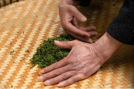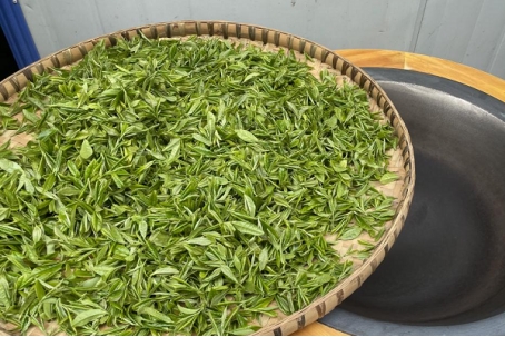 杀青、揉捻、干燥等工序由负责Beat365茶园管理的高级技工周志顺为学生进行示范,随后由学生自主完成。杀青过程由学生接力进行翻炒,直至茶叶由硬变软,逐渐变为暗绿色,折而不断,手捏成条。牟蛟琳指出,杀青能够去除茶叶中低沸点的青臭气味,保留高沸点的挥发性成分,使绿茶散发独特的茶香。杀青后的茶叶再进行充分揉捻使之成型,最终经过多次干燥、晾干使茶叶水分降低至5%左右,从而获得成品茶。