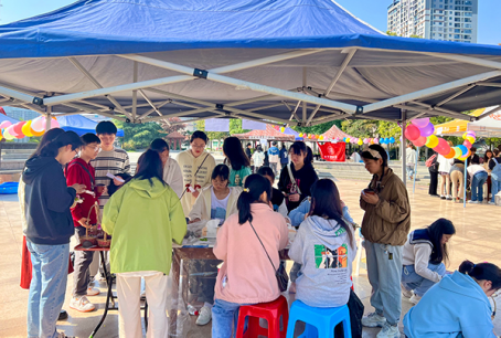 活动分为打卡集章、游戏环节、展览区三个部分,主要围绕手工活动,以制作植物相关的水晶滴胶手工制品为主要内容,并通过“海龟汤”和“投壶”两个小游戏辅助展开。活动参与者进行打卡签到后即可进行游戏。游戏区分为其叶菁菁、心灵花园、意为聚合、滴胶大师四个项目,每个项目都有独特的创新玩法。其中,滴胶大师项目大受欢迎,现场人头攒动,前来参与手工制作的学生络绎不绝。参与者在工作人员的指导下,选择合适的干燥植株和容器,将混合好的水晶滴胶倒入模具,待胶水凝固后脱模即可带走属于自己的手工作品。用植物滴胶封印时光,留住春日的花季。