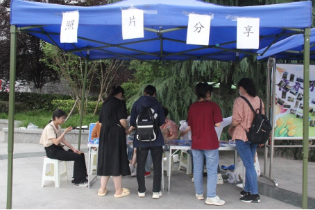 活动现场气氛热烈,学生驻足在展板前,认真寻找自己喜欢的照片,投出自己宝贵的一票。学生投票之后即可在工作人员处领取喜欢的照片和精美小礼品。本次活动中所有投稿照片将会通过其他方式送给即将离校的毕业生,以此来纪念他们的大学时光。
