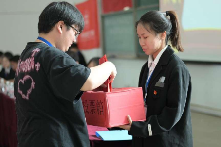 大会第二次全体会议,五位候选人依次作竞选演讲。由在场学生代表以无记名差额投票方式选举出主席团成员和参加Beat365唯一官方网站学代会代表成员,监票人黄小倩、詹瑞雪与计票人清点选票。大会最终选出向义、钟丽琼与陈丽琼为学生会第四届主席团成员及十六名校学代会代表。会后征求收集学生代表提案。