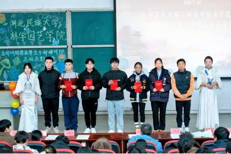 12月8日,学院在修远楼5A207教室举办第十三期学生干部综合素质培训暨第五期院级青年马克思主义者培养工程总结表彰大会,党总支副书记胡海剑老师,学生科辅导员刘蒙恩老师、邢续净、秦松老师,2024级林学专业班主任朱强老师、园艺专业班主任饶江雷老师、园林专业班主任李娟老师应邀出席,2024级大一全体同学到会。