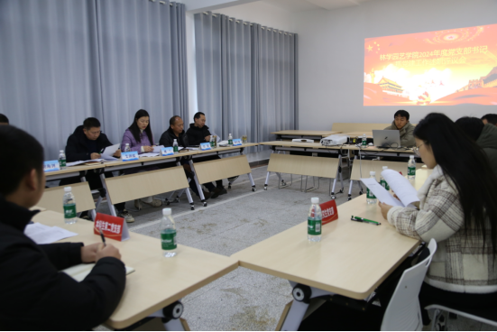 2025年2月20日下午,林学园艺学院党总支在学院202会议室组织召开2024年度党支部书记抓党建工作述职评议会。学院党总支书记姚兰主持,院长艾训儒、党总支副书记胡海剑、副院长周大寨、副院长肖强出席指导。农林教工党支部书记吴林、地理与城规教工党支部书记汤弟伟、研究生党支部书记徐莉、本科生第一党支部书记胡靖偲及本科生第二党支部书记刘蒙恩进行工作汇报。