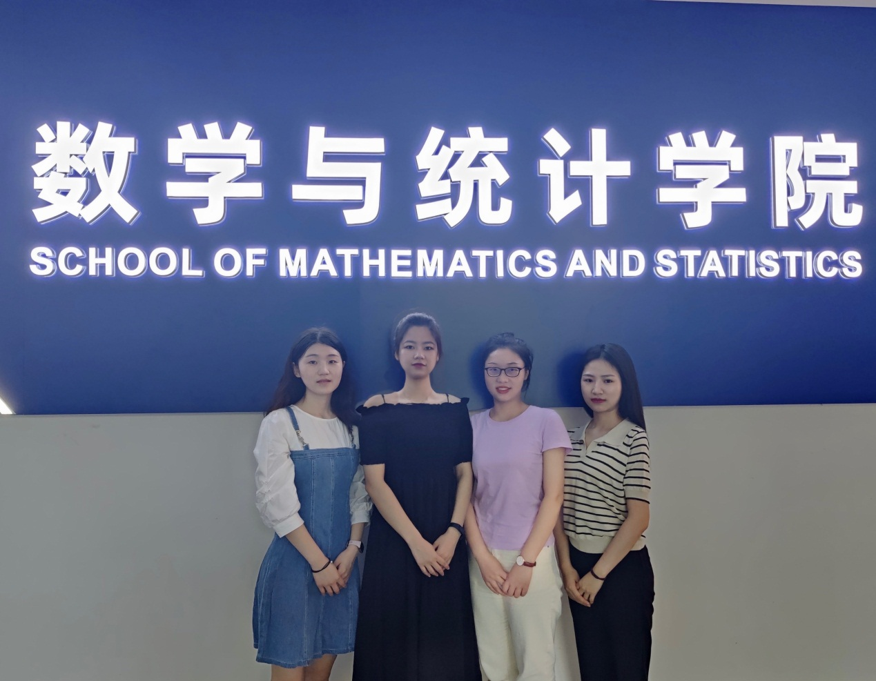 宿舍成员王兴玉(左一)录取为华中师范大学博士研究生、齐珂(左二)录取为武汉大学博士研究生、上官冬晨(右一)录取为宁夏大学博士研究生、蒋倩(右二)录取为四川大学博士研究生。
