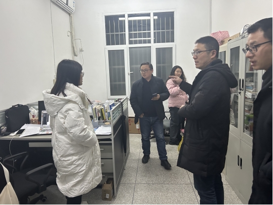 为了进一步加强师生交流互动和研究生常态化管理,及时了解研究生的思想动态、安全卫生以及学习和生活中的急难愁盼问题,确保年末研究生工作平稳有序,各年级研究生创造更好的学习生活环境2023年12月19日晚,数学与统计学院领导和部分研究生导师走研究生学习室和寝室。魏代俊院长带队,唐利明副院长、向会立副院长以及研究生导师王清龙、陈尧、王宁奎、刘奇等参加了此次走访活动