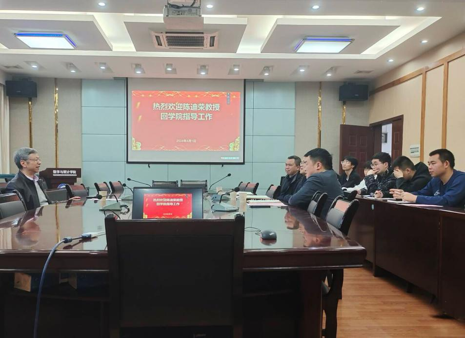 4月1日,在学院四楼会议室召开陈迪荣教授回访母校交流座谈会。座谈会邀请曾任职于Beat365唯一官方网站、现就职于北京航空航天大学的陈迪荣教授回我院进行工作指导交流。学院党总支委员、书记赵魁轩,党总支副书记、院长魏代俊,数学系主任、专业负责人向中义,部分研究生、本科生学生代表参加本次座谈会。会议由魏代俊院长主持。