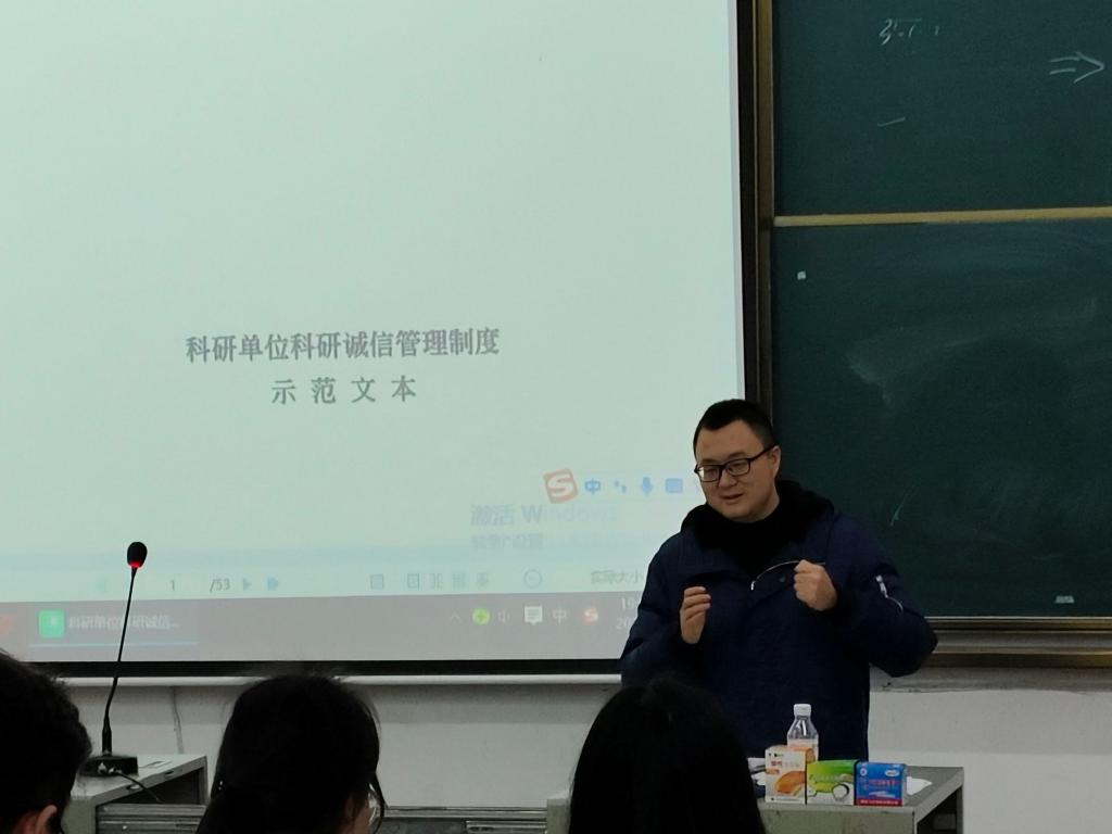 2024 年 11 月 22 日晚,数学与统计学院在3308教室召开关于《科研单位科研诚信管理制度示范文本》的学习会议。学院全体研究生齐聚于此,会议由王清龙老师主持,研究生会学术部讲解。