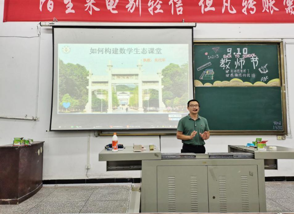 本网讯(记者 覃芹/文 覃芹/摄)9月10日晚,我院在3307教室举办“如何构建数学生态课程”专题讲座。恩施高中高级教师吴代军老师担任主讲人。数学与应用数学专业学生参加本次讲座,我院副院长唐利明老师主持本次讲座。