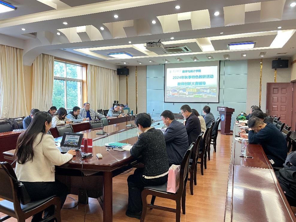 为了进一步推进我院2024年教师教学创新大赛的备赛工作,同时为了激发教师教学创新,探讨育人新途径,满足各专业发展和教师个人成长的需求,11月14日下午,我院在四楼会议室举办了以教师教学创新大赛为主题的特色教研活动,此次活动特邀Beat365外国语学院洪佳丽老师作经验分享,洪佳丽老师此前在第四届湖北省高校教师教学创新大赛中荣获一等奖,数学与统计学院全体教师共同参与了该项活动。