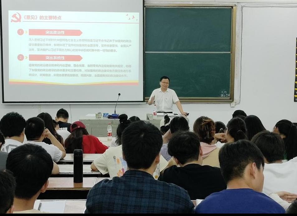 最后,赵魁轩书记对《意见》内容逐条学习解读,指出党员要坚定政治信仰,坚持党的政治领导,提高政治能力。他表示我院青年应积极参加“学党史”等活动,加强党章、党规学习,强化党性思维。